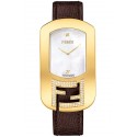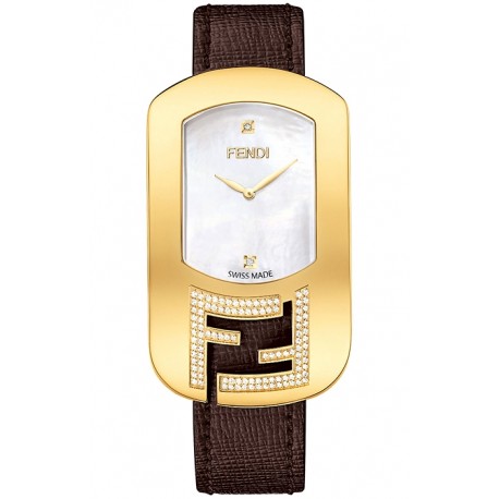 Fendi Chameleon Diamond Yellow Gold Case White Mother-of-Pearl Dial Brown Leather Strap 29 mm Women's Watch - Reference F300434521C1