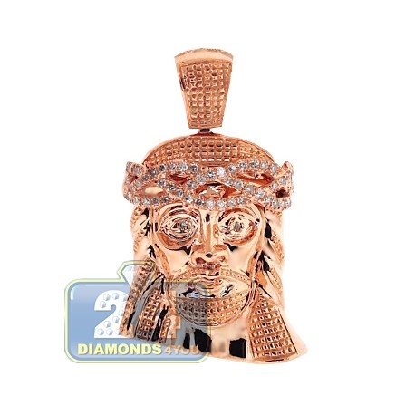 10K Rose Gold 0.27 ct Diamond Jesus Christ Face Mens Pendant