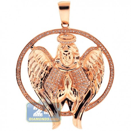 10K Rose Gold 0.59 ct Diamond Halo Angel Jesus Christ Pendant