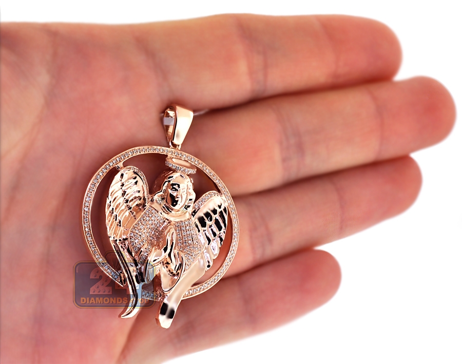Proclaim your undying faith with our diamond angel Jesus Christ pendant! Professionally crafted in warm 10k rose gold, it's highly polished for ultra smooth feel. The Jesus Christ pendant is encrusted with 0.59 carat of icy white round brilliant-cut natural diamonds. This men's diamond pendant measures 47 mm in length and 36 mm in width. This diamond spiritual Jesus pendant is perfect for everyday wear!