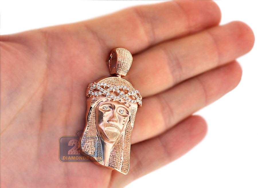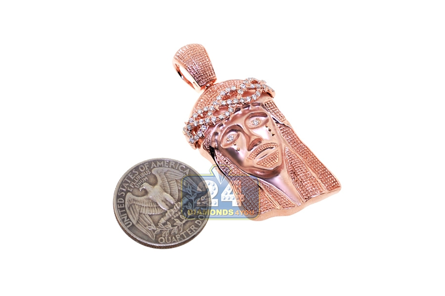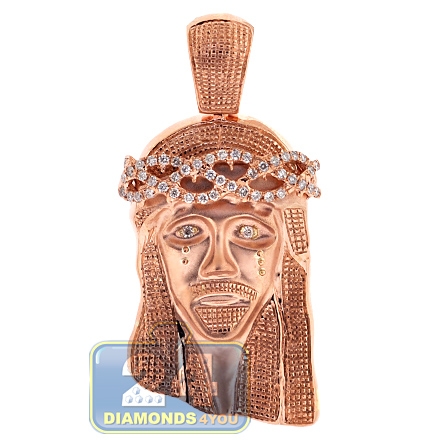 10K Rose Gold 0.60 ct Diamond Jesus Christ Head Mens Pendant