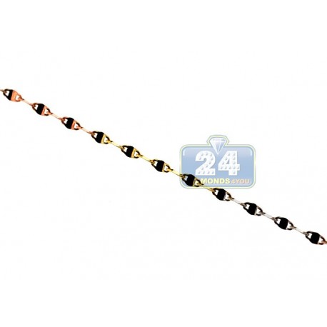 10K Three Tone Gold Fancy Link Womens Necklace 1.5 mm 18 Inches