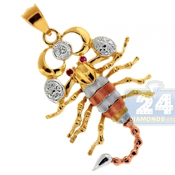Solid 10K Three Tone Gold Scorpion Mens Pendant