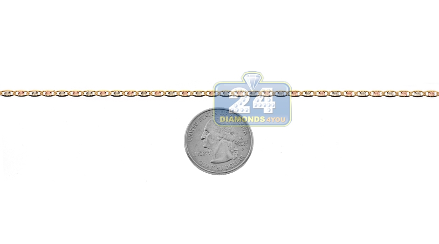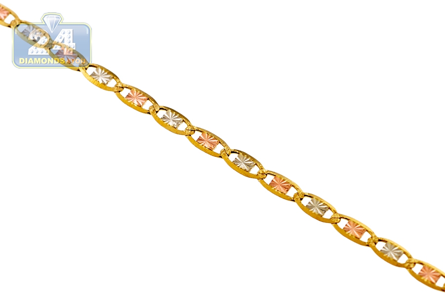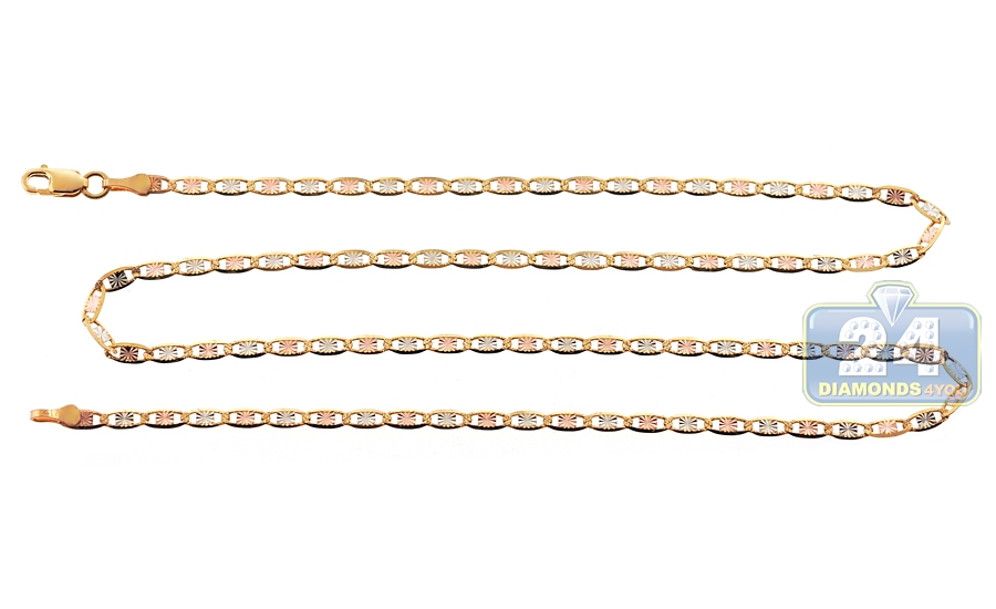 10K Three Tone Gold Valentine Link Womens Chain 2.5 mm 18 Inches