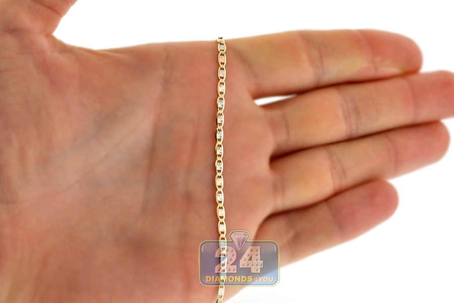 This valentine link chain is a nice jewelry piece for any occasion! It's made of solid 10k yellow, white, rose gold, and has high-polished finish. The chain features 18 inches in length, 2.5 mm in width and approximatelly 3.5 grams in weight. It's a unique statement of your sense of style!