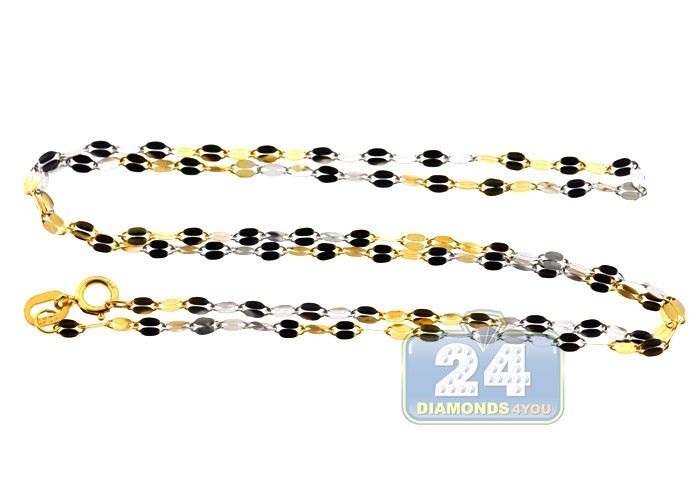 10K Two Tone Gold Oval Shape Womens Necklace 2 mm 20 Inches