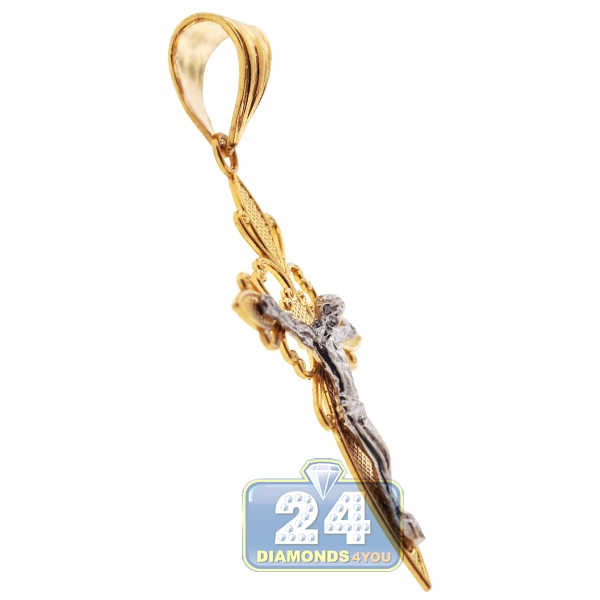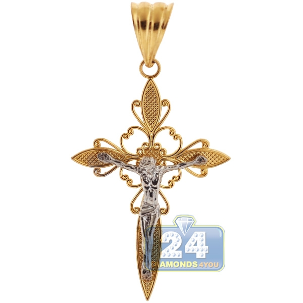 10K Two Tone Gold Jesus Christ Crucifix Cross Pendant
