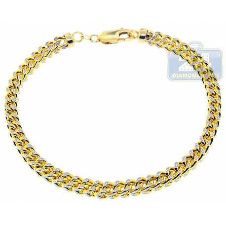 10K Two Tone Gold Franco Diamond Cut Mens Bracelet 5 mm 10 Inch