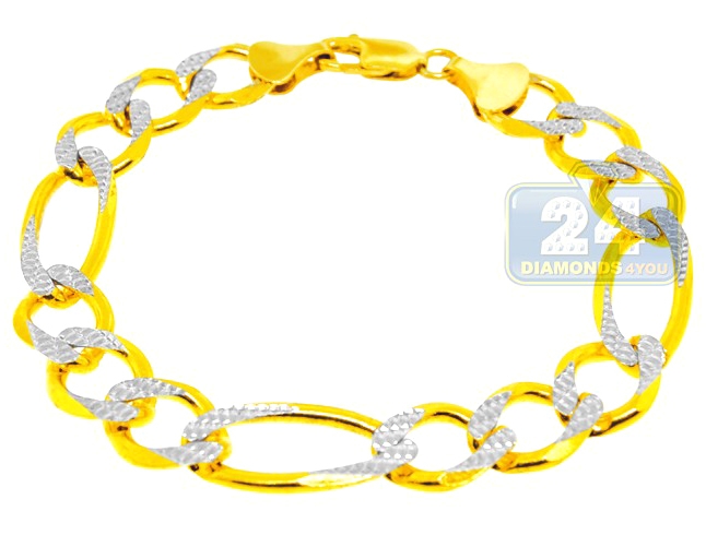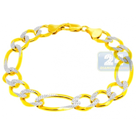 10K Two Tone Gold Figaro Link Mens Bracelet 12 mm 9 Inches