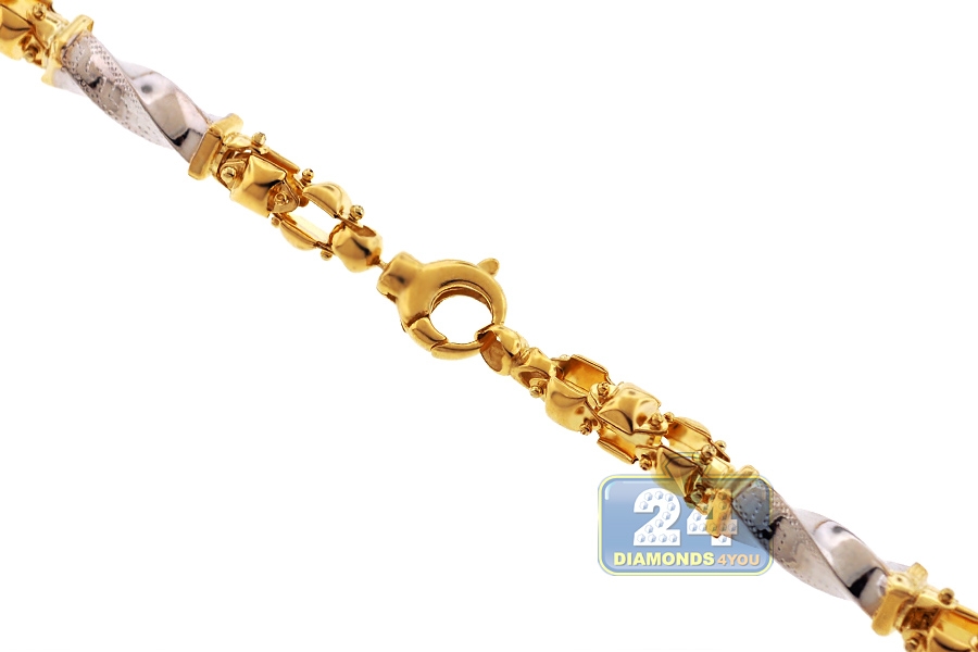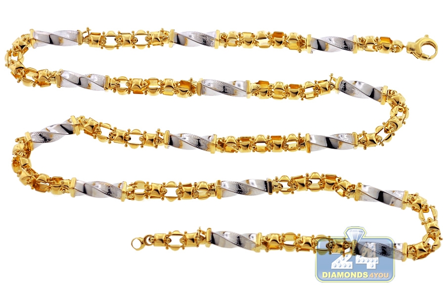 10K Two Tone Gold Swirl Bullet Mens Necklace 6 mm