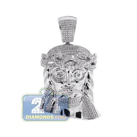 10K White Gold 0.27 ct Diamond Jesus Christ Face Mens Pendant