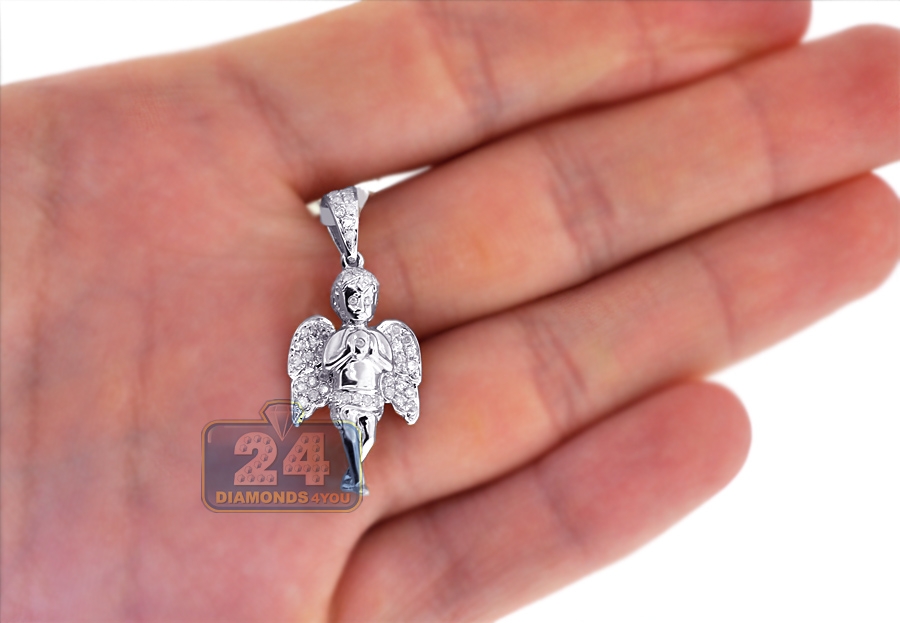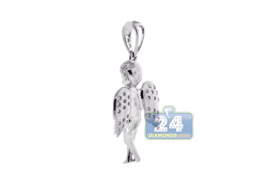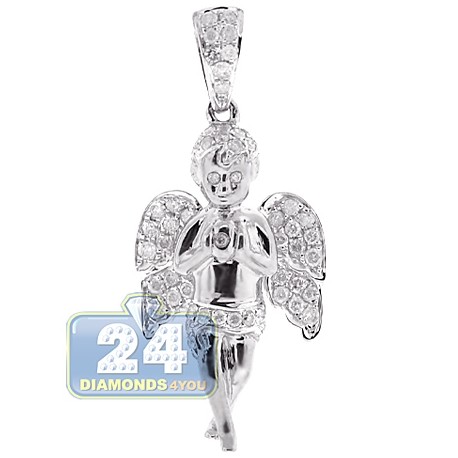 10K White Gold 0.58 ct Diamond Praying Baby Angel Pendant