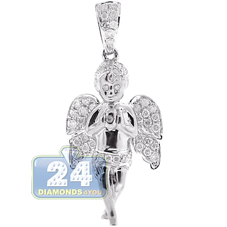 Our praying baby angel pendant is a lovely symbol of serenity! It's expertly produced from cool 10k white gold, and precisely polished for ultra shiny look. The angel pendant is accented gleaming white round brilliant-cut genuine diamonds weighting 0.58 carat (SI1-SI2, G-H). This men's diamond pendant pendant features 35 mm in hanging length and 15 mm in width. The diamond angel pendant is an amazing addition to any attire!