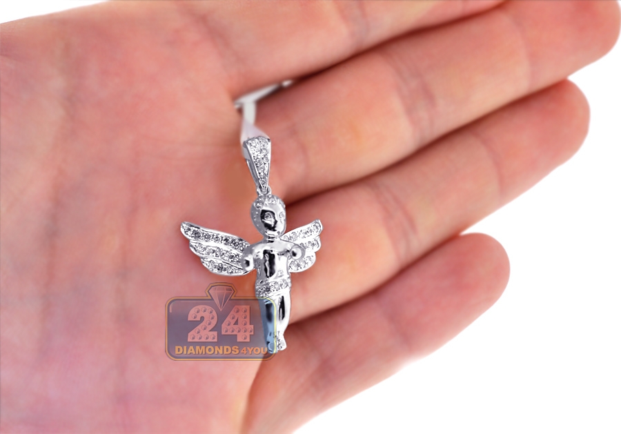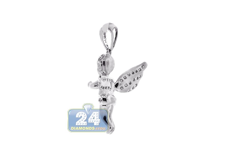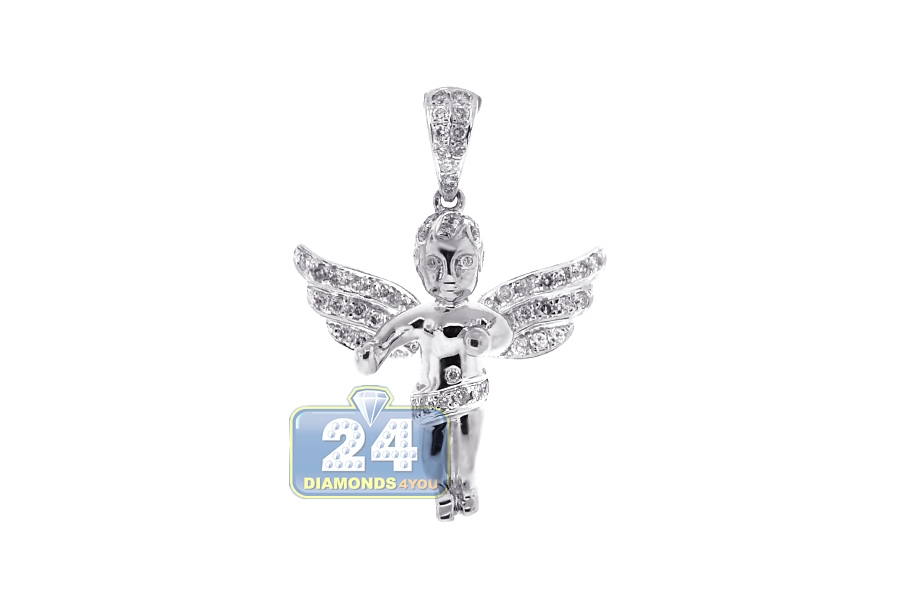 10K White Gold 0.60 ct Diamond Guardian Angel Mens Pendant