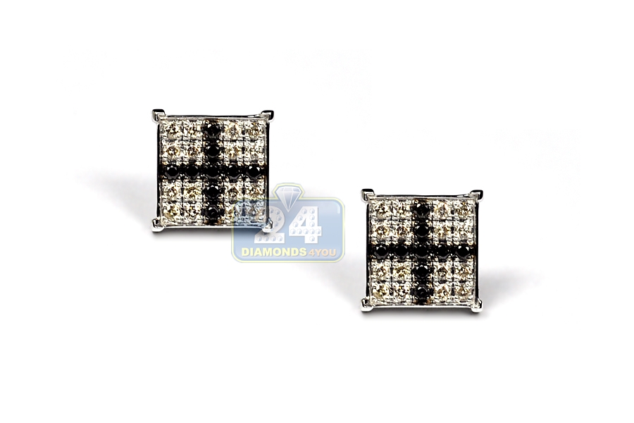 10K White Gold 0.73 ct Black Diamond Cross Mens Stud Earrings