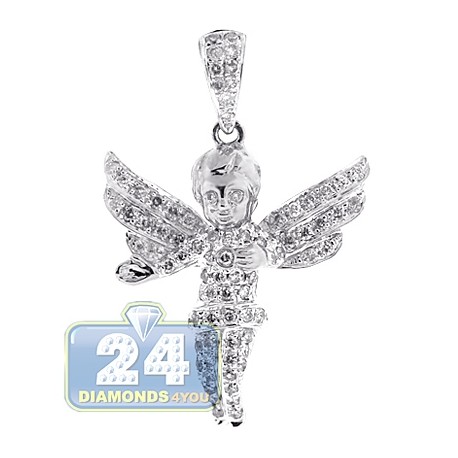 This diamond angel pendant is a gorgeous symbol of serenity! It's handmade of cool 10k white gold, and polished for smooth shine. The angle charm is also encrusted with 0.83 carat of icy white round brilliant-cut natural diamonds, SI1-SI2 clarity and G-H color. Our men's diamond pendant features 35 mm in hanging length and 24 mm in width. The diamond angel pendant is a stunning accessory for someone special!