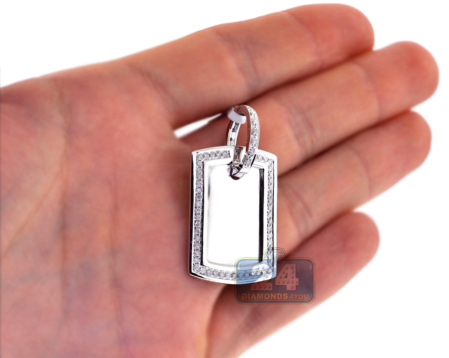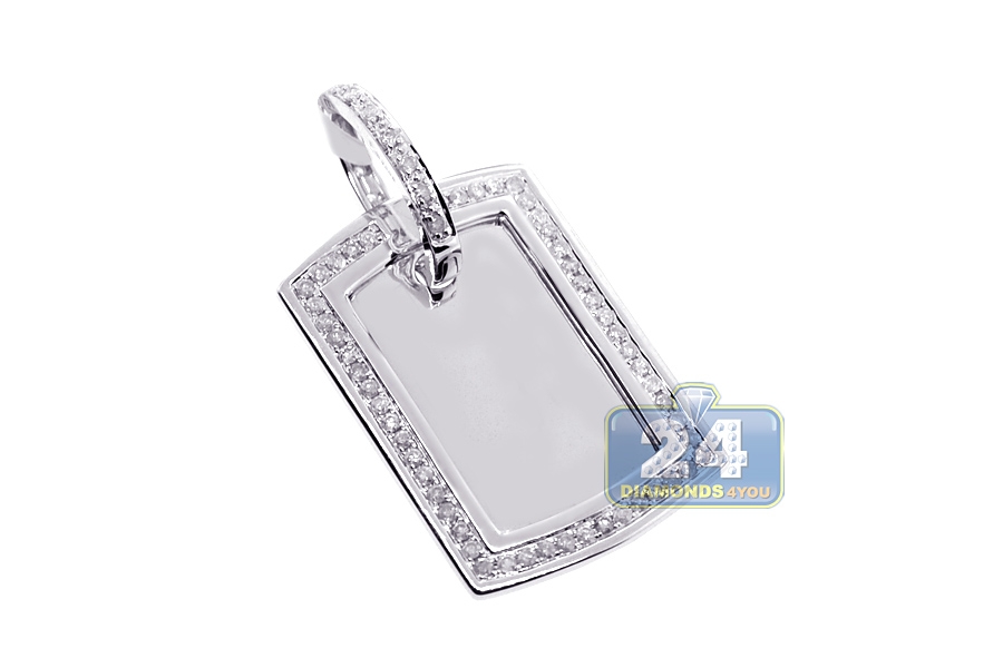 10K White Gold 0.84 ct Diamond ID Style Tag Mens Pendant