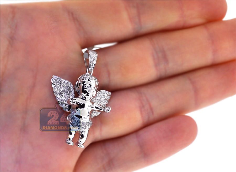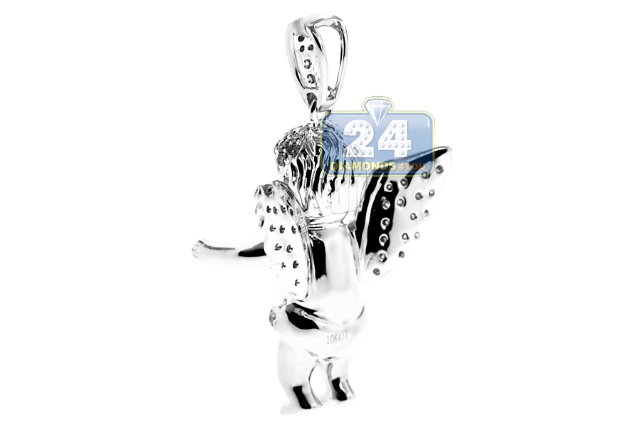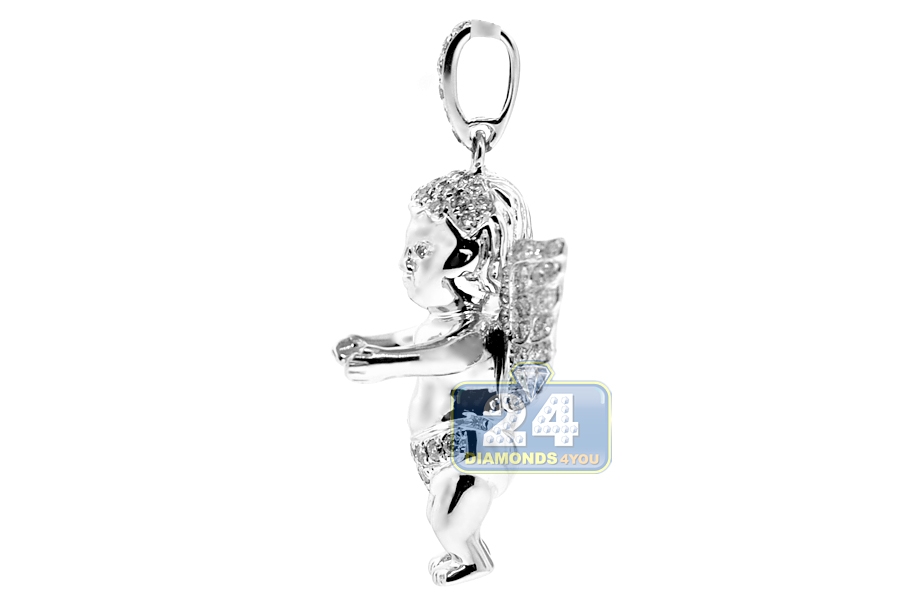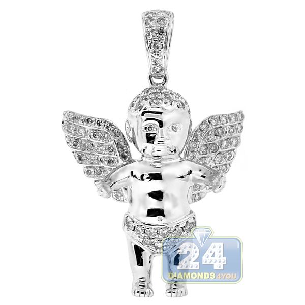 10K White Gold 0.93 ct Diamond Baby Angel Mens Pendant