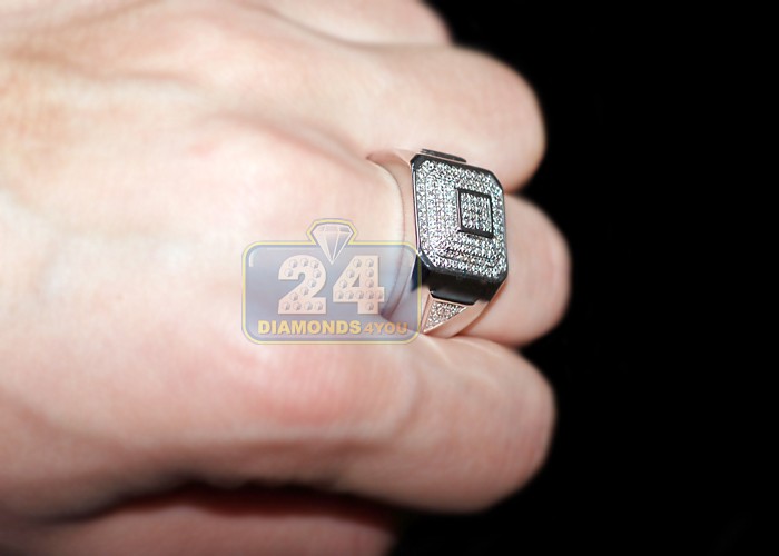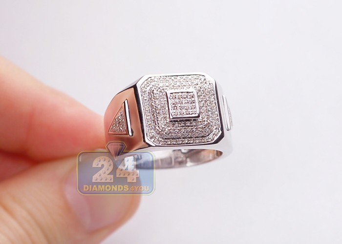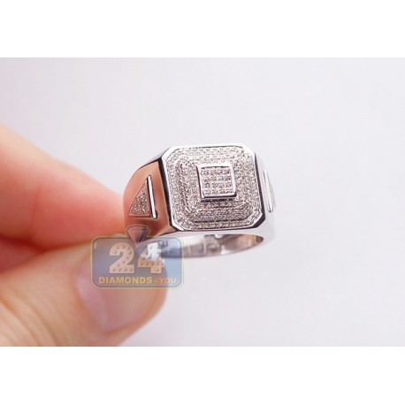 10K White Gold 0.50 ct Diamond Mens Square Step Cut Ring