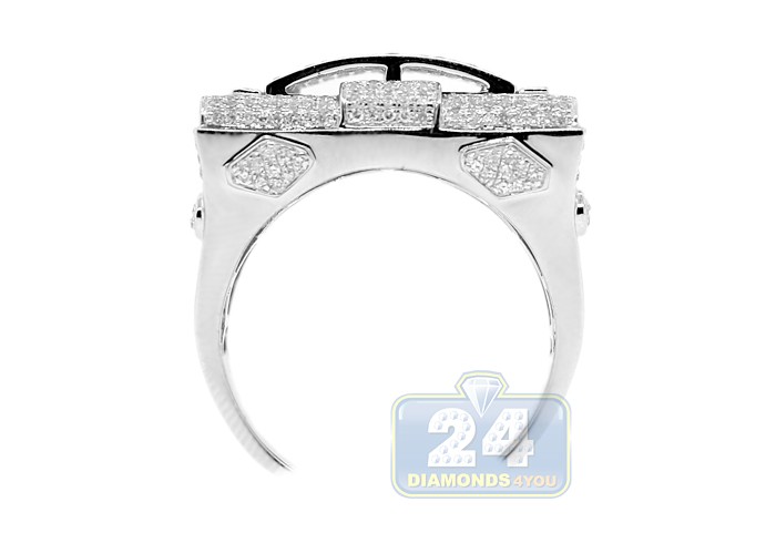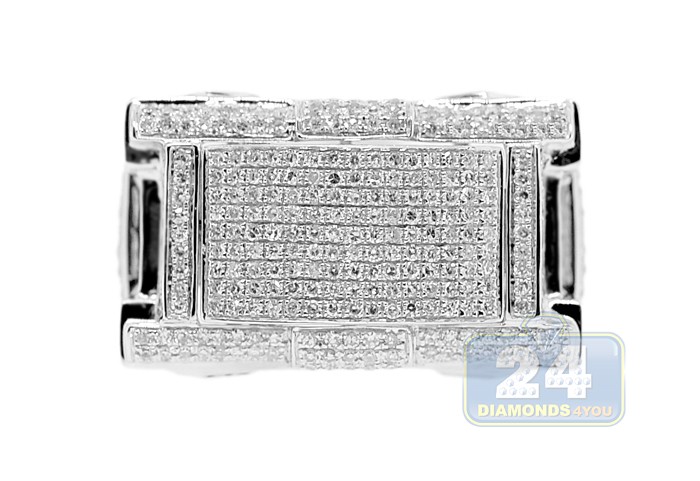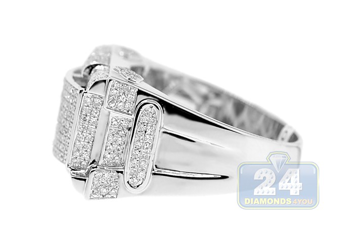 10K White Gold 1.06 ct Diamond Mens Rectangle Signet Ring