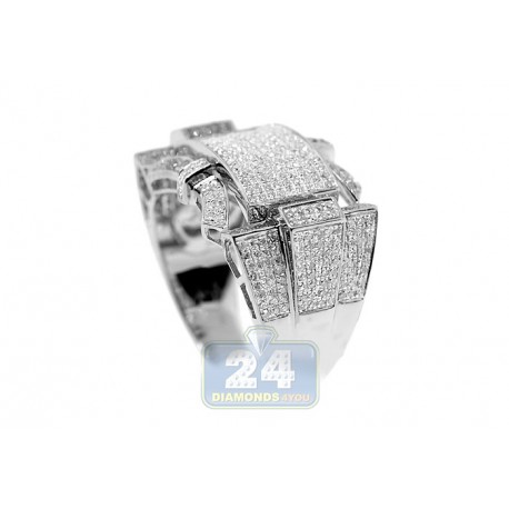 Glittering with style and masculinity, our signet is luxurious and not too flashy! It features classic shapes with openwork elements handcrafted in 10k white gold with perfectly polished finish, and expertly handset with genuine round cut diamonds weighting 1.21 carat. Each stone is totally eye clean and sparkling, with G-H color and SI1-SI2 clarity. What a perfect accessory to any men's outfit!
