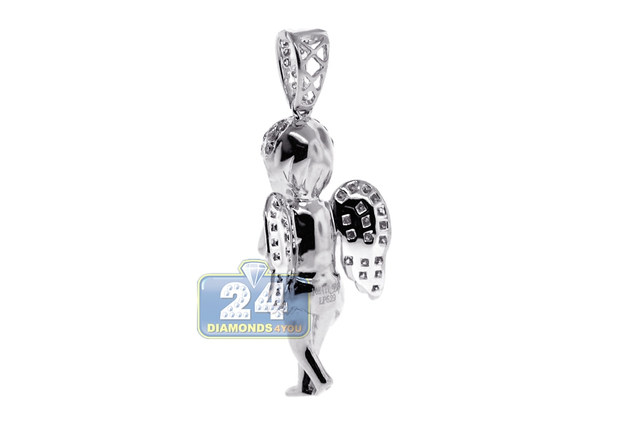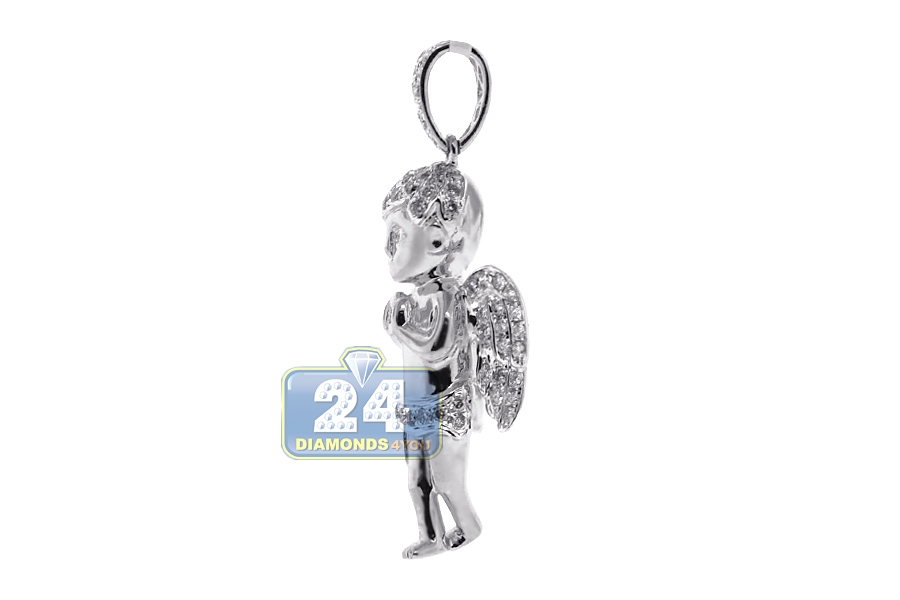 10K White Gold 1.30 ct Diamond Praying Angel Mens Pendant