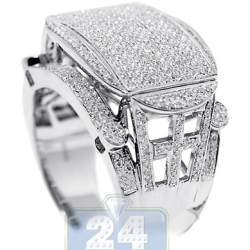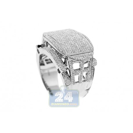 10K White Gold 1.37 ct Diamond Pave Mens Signet Ring