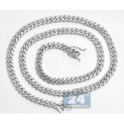 This bold diamond miami cuban chain is designed for a sophisticated man! It's composed of round links slightly twisted together that expertly made of solid 14k white gold, and high-polished for very shiny look. The cuban link necklace is encrusted with approximately 11.00 carats of round brilliant-cut genuine diamonds (SI1-SI2 clarity, G-H color). Our men's diamond chain measures 30 inches in length, 9 mm in width and about 120 grams in weight. Amaze your neckline with this stunning diamond cuban necklace!