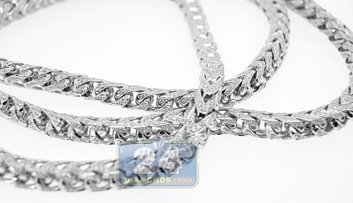 14K White Gold 12.00 ct Diamond Franco Mens Chain 5 mm 30 Inches