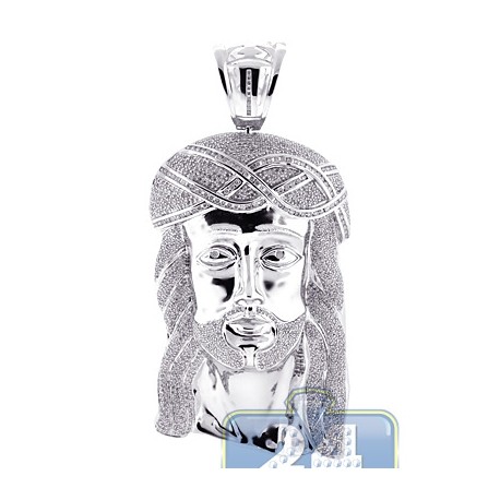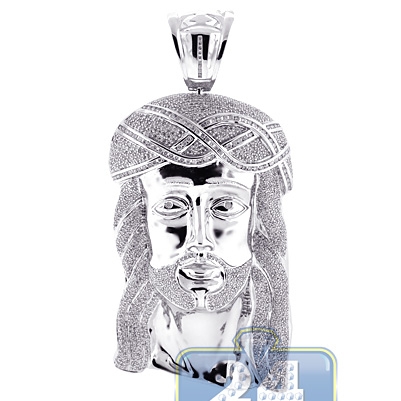 10K White Gold 13.04 ct Diamond Jesus Christ Head Pendant
