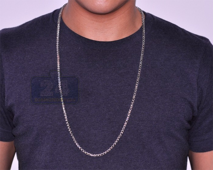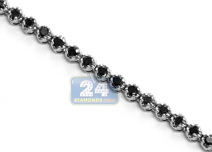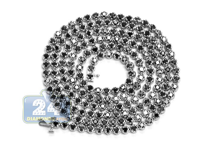 14K White Gold 17.30 ct Black Diamond Mens Tennis Chain 33 Inches