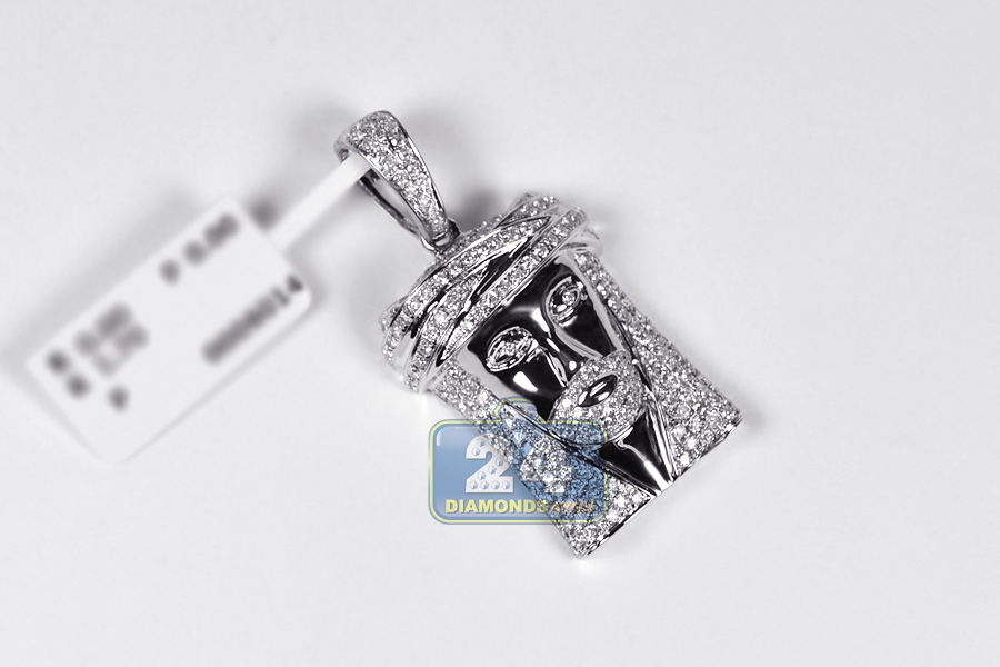 10K White Gold 1.88 ct Diamond Jesus Christ Head Pendant