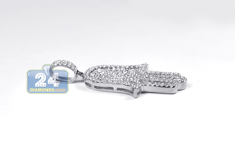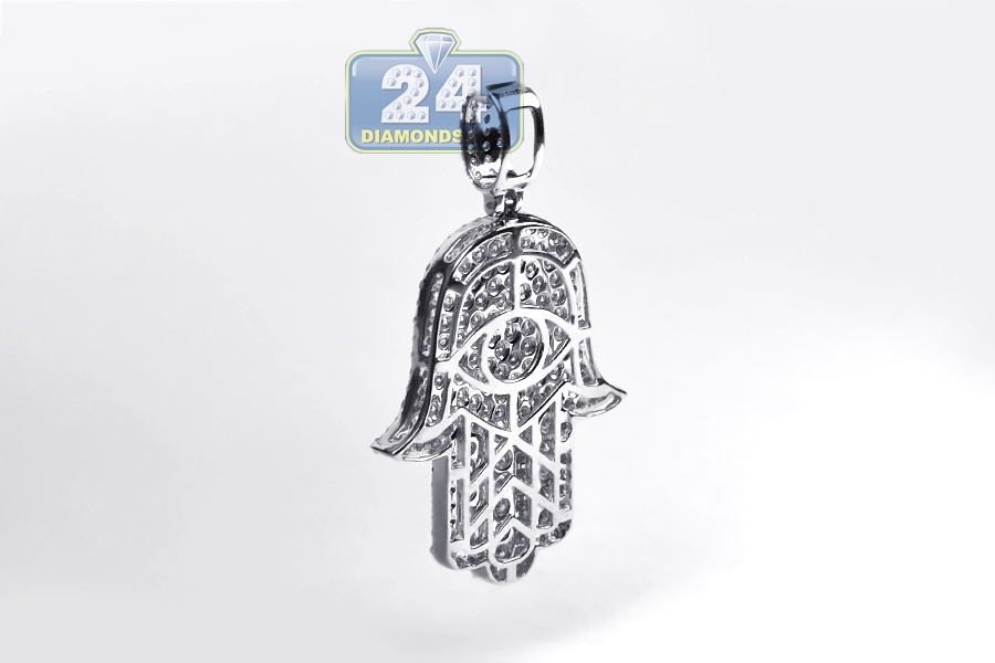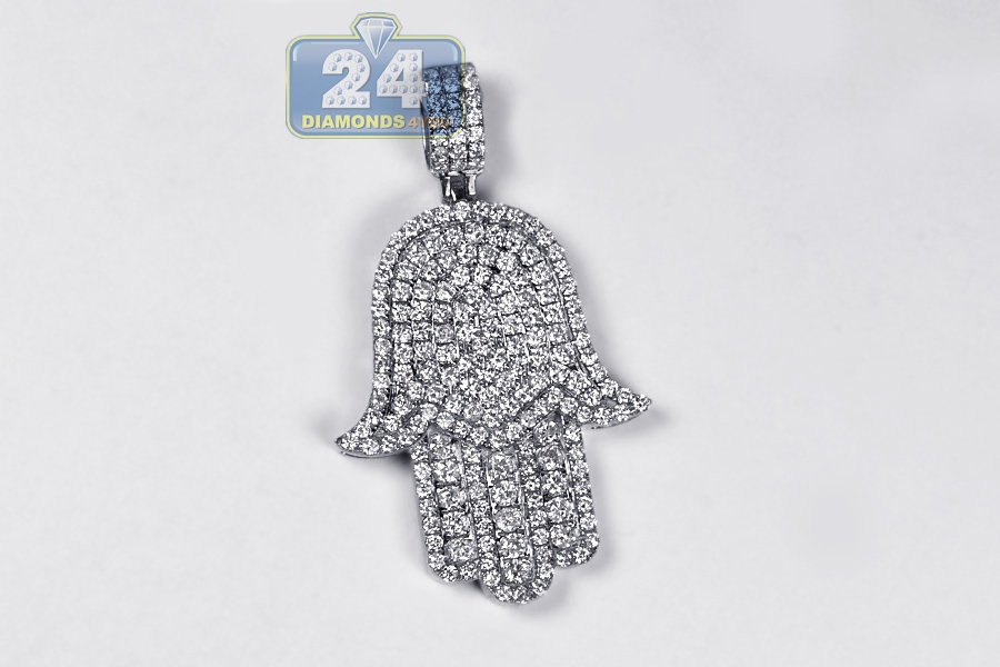 10K White Gold 3.48 ct Diamond Iced Out Hamsa Hand Pendant