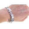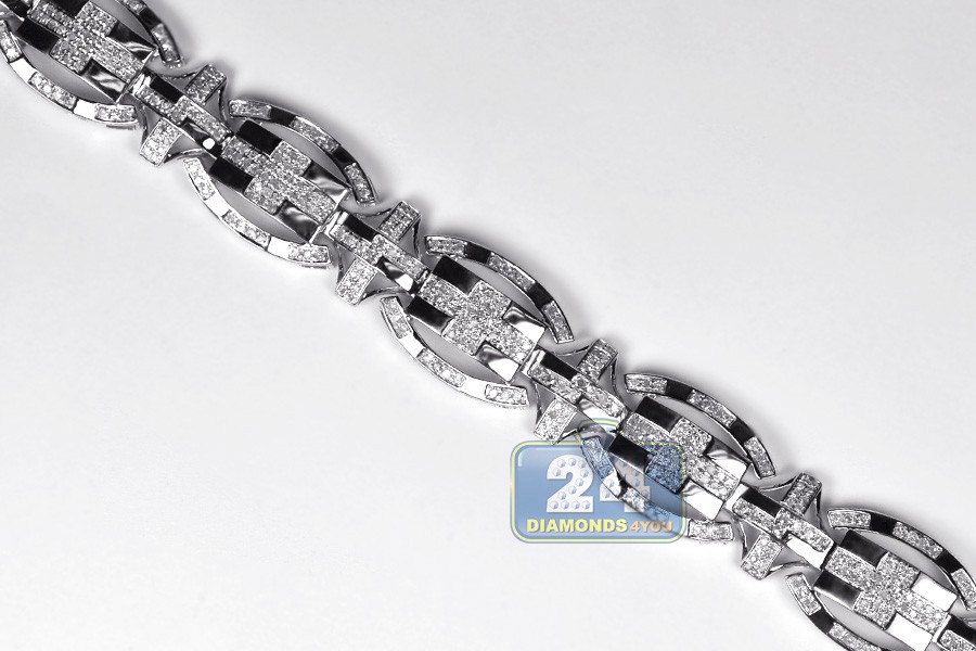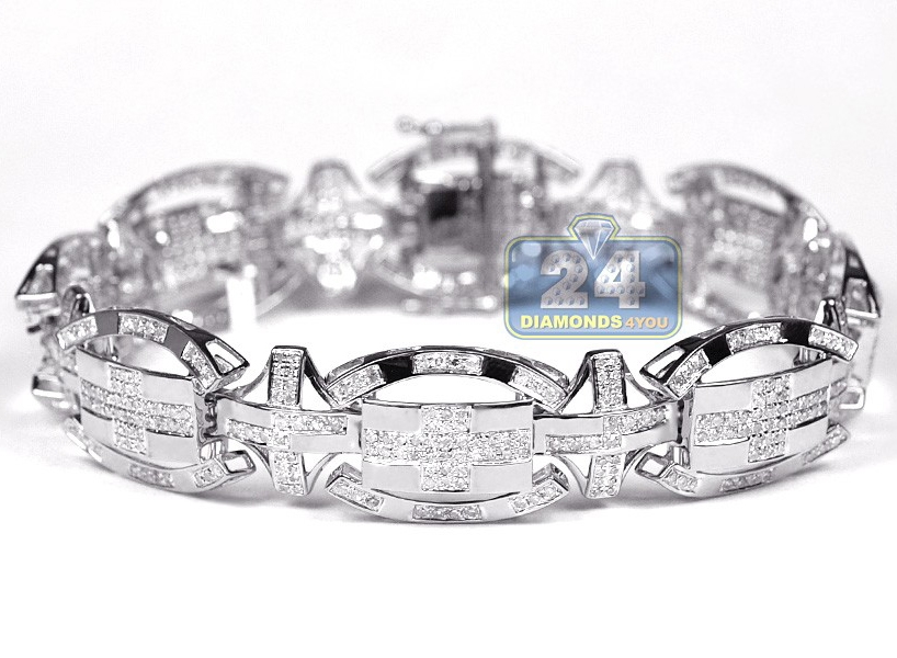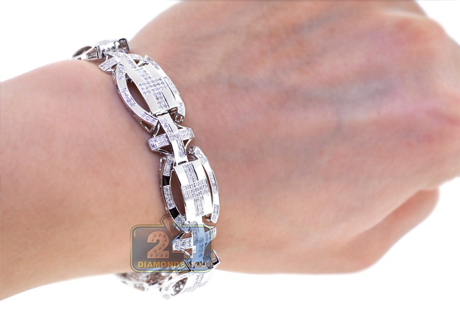 Add a sparkling detail to your look wearing our men's diamond bracelet! Professionally crafted in cool 10k white gold, it's highly polished for ultra smooth finish. The piece of jewelry is paved with white round-shaped real diamonds weighting 3.22 carats. It features 8.75 inches in length and 16 mm in width, and comfortable box closure. This oval link bracelet will make an unforgettable statement!