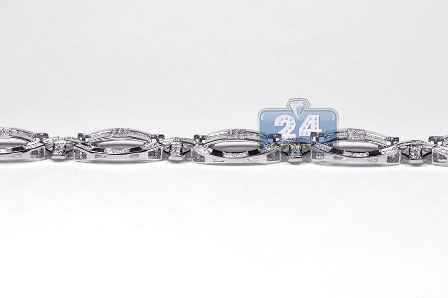 10K White Gold 3.22 ct Diamond Oval Link Mens Bracelet 8.75 Inch
