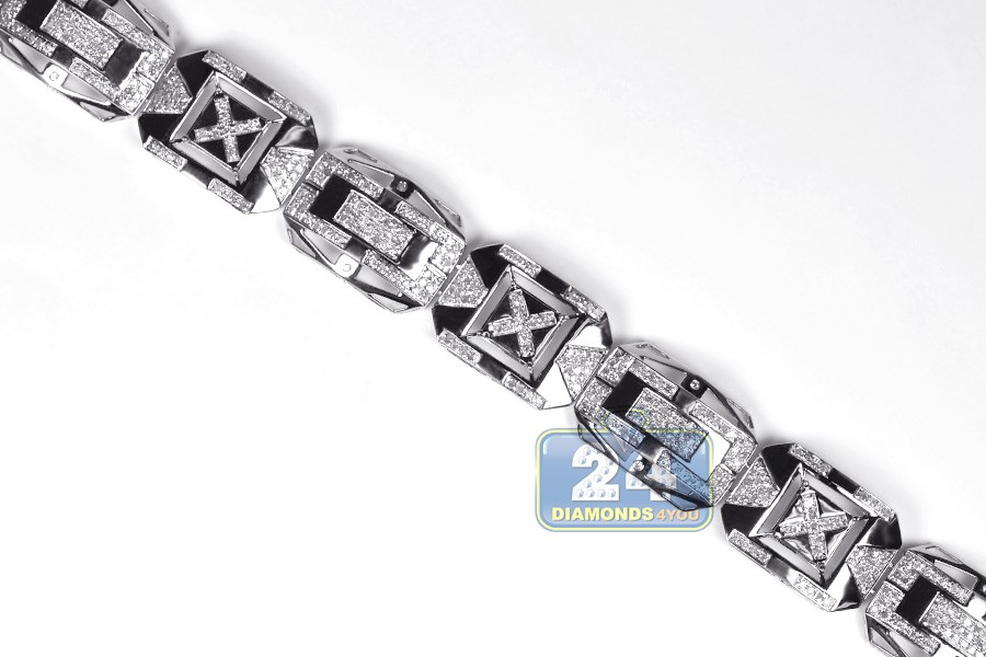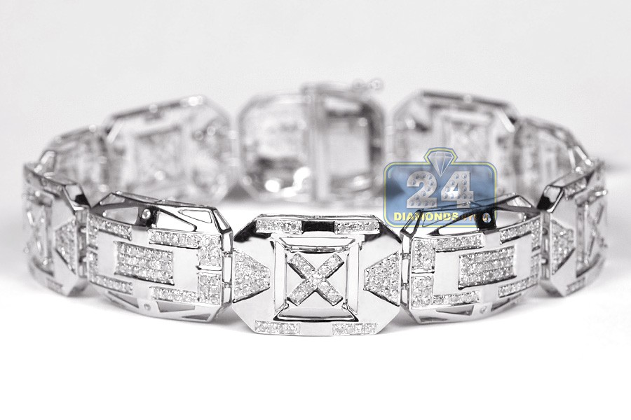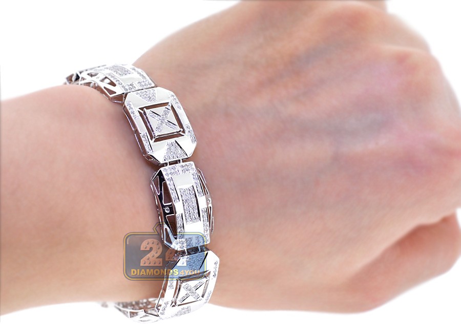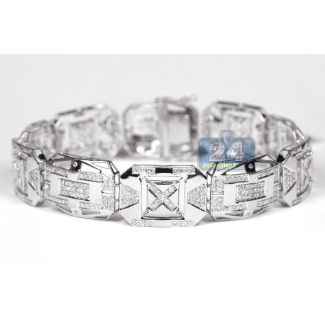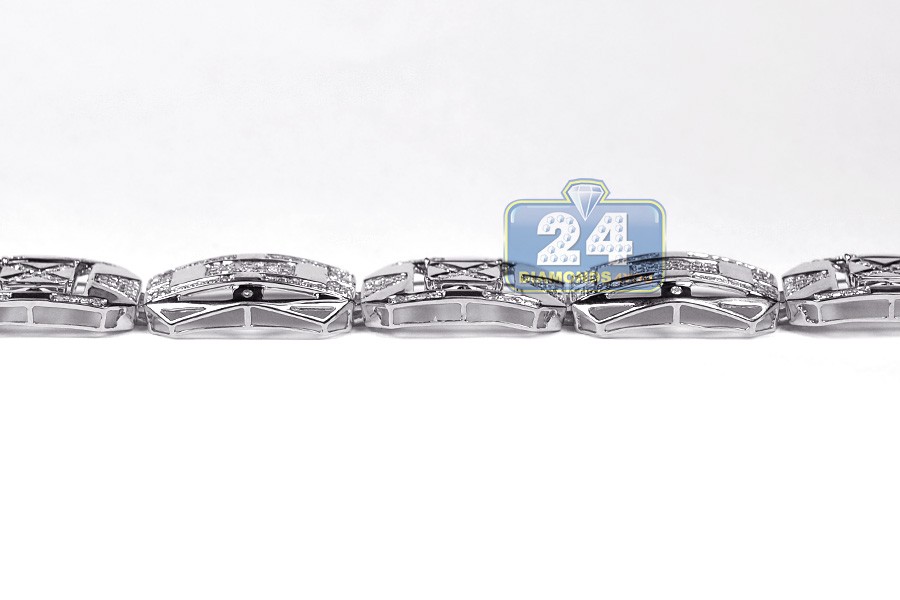 10K White Gold 3.62 ct Diamond Rectangular Link Mens Bracelet