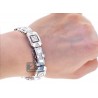 This rectangular link bracelet will add a handsome touch to any outfit! It's lovely made of affordable 10 karat white gold, and high-polished for very smooth finish. Our men's wrist bracelet is paved with 3.62 carats of icy white round brilliant-cut natural diamonds. It measures 8.75 inches in length and 15 mm in width. Accessorize your wardrobe with this diamond link bracelet!