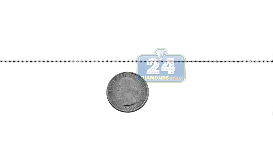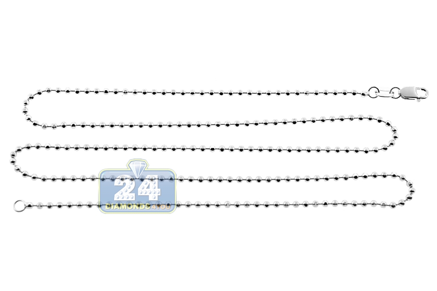 10K White Gold Army Diamond Cut Bead Womens Chain 1.5 mm