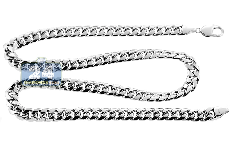 10K White Gold Puff Miami Cuban Link Mens Chain 9 mm