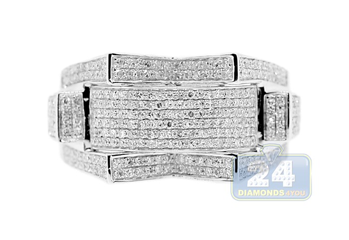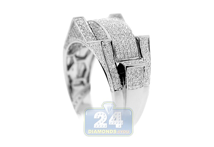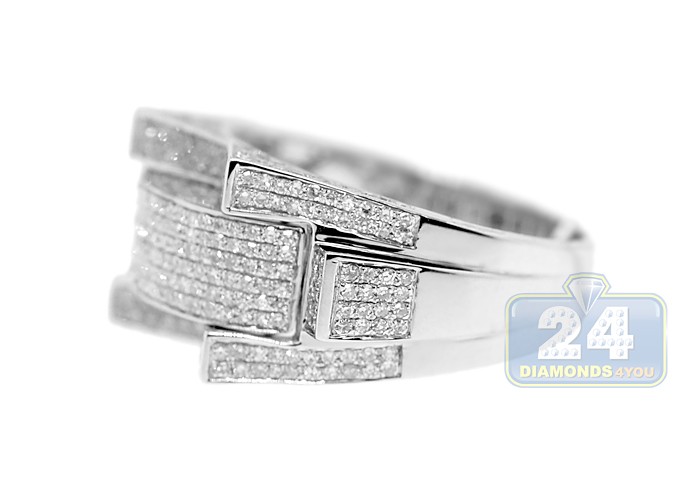 10K White Gold 0.98 ct Diamond Mens Multi Shaped Ring