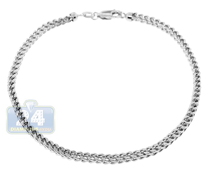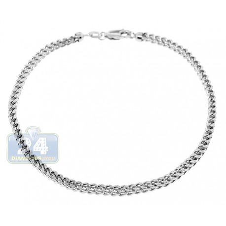 10K White Gold Diamond Cut Franco Mens Bracelet 3 mm 8 1/2 Inch
