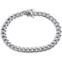 Our durable Miami Cuban link bracelet is really a classic look that goes anywhere! It is masterly handmade of lustrous 10k white gold, and highly polished for very smooth finish. The piece measures 9 inches in length, 9 mm in width and approximately 52.0 grams in weight. It is also secured with the safest box-with-double-lock clasp. Rich and timeless gold bracelet!