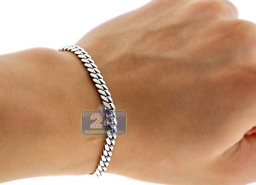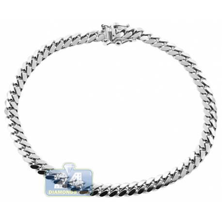 10K White Gold Solid Miami Cuban Mens Bracelet 5 mm 8 Inches