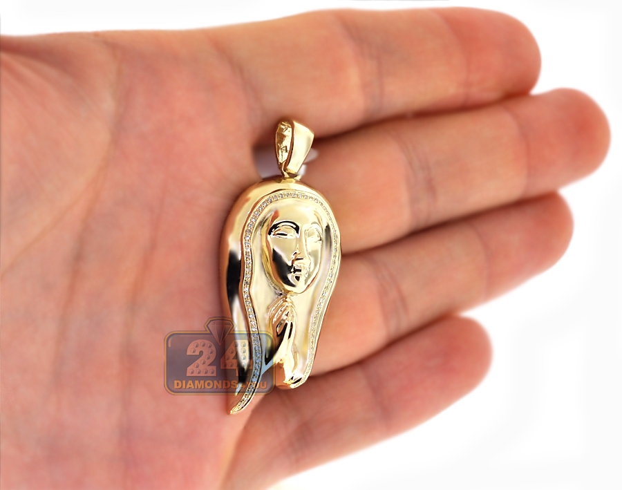 10K Yellow Gold 0.22 ct Diamond Praying Jesus Christ Pendant