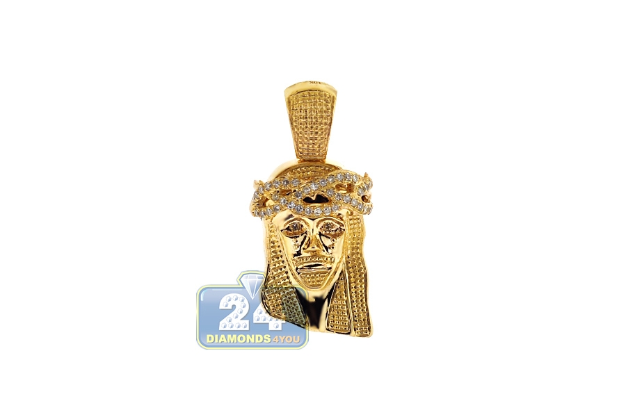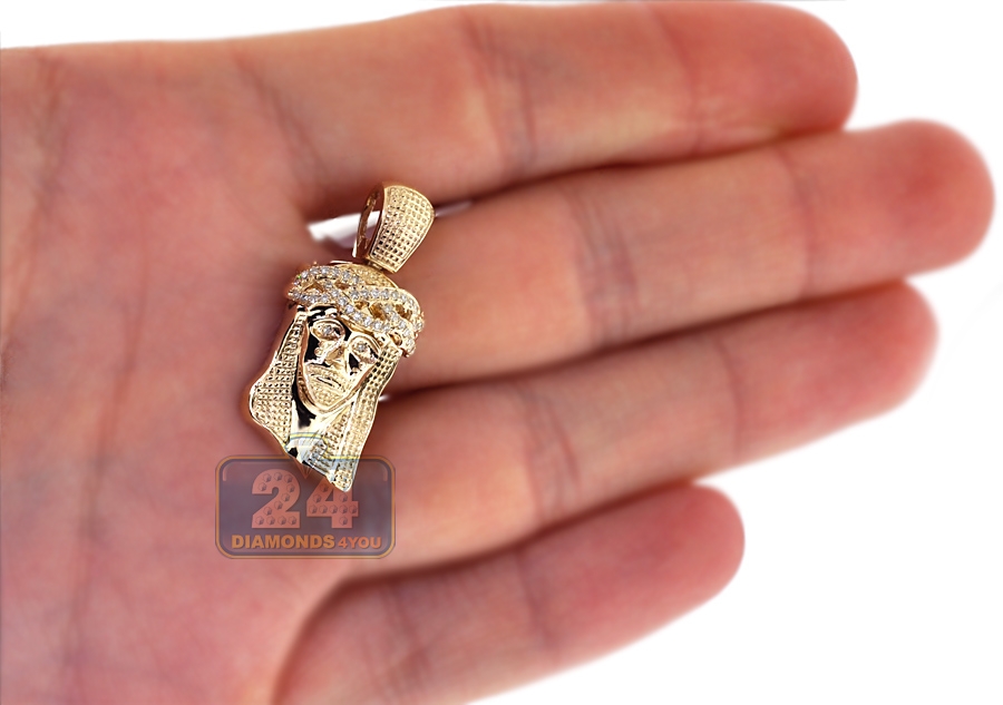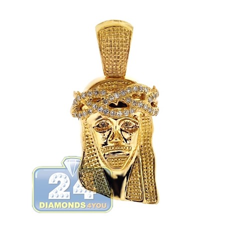 10K Yellow Gold 0.23 ct Diamond Jesus Head Religious Pendant