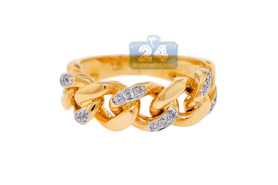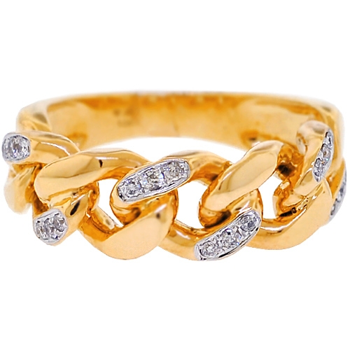 Our men's diamond ring is uniquely designed for the lovers of miami cuban chains! It is gorgeously handmade of warm 10k yellow gold, and accented with 0.25 carat of icy white round brilliant-cut genuine diamonds. This affordable cuban link ring will make an unforgettable statement!