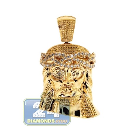 10K Yellow Gold 0.27 ct Diamond Jesus Christ Face Mens Pendant