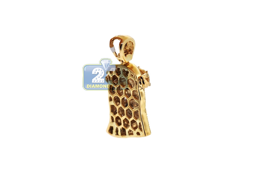 A shining statement of faith comes in our diamond Jesus pendant! Gorgeously produced from hot 10k yellow gold, it has highly polished shimmering finish. The religious pendant is encrusted with 0.27 carat of lustrous white round brilliant-cut real diamonds (SI1-SI2 clarity and G-H color). The piece measures 31 mm in hanging length and 18 mm in width. This men's diamond pendant would make a special gift for a religious milestone!