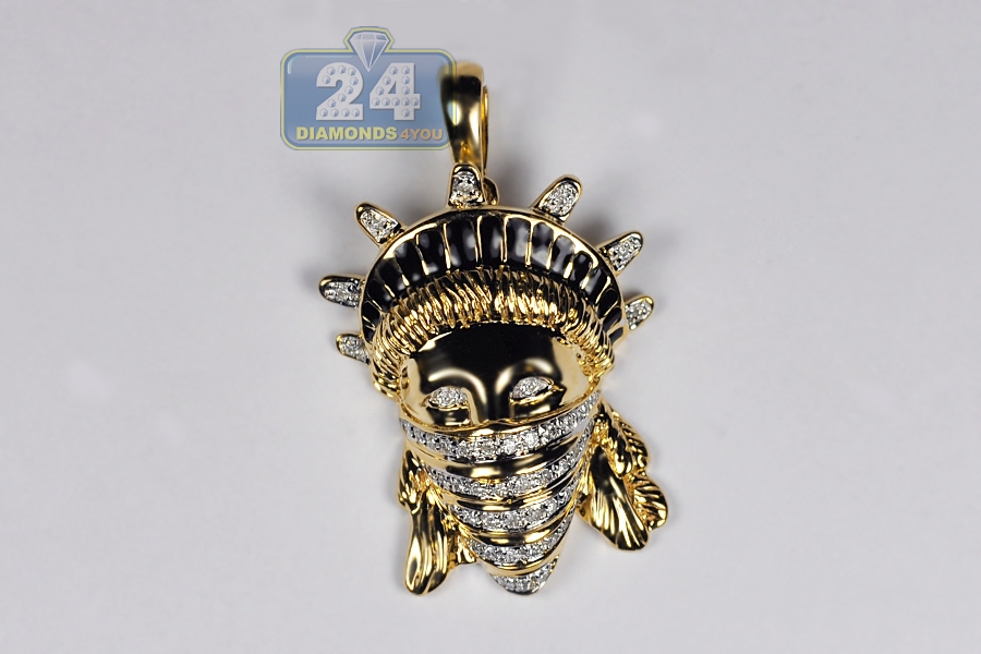 10K Yellow Gold 0.29 ct Diamond Statue of Liberty Bandana Pendant