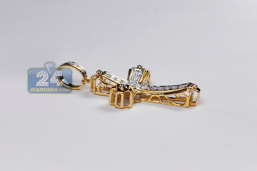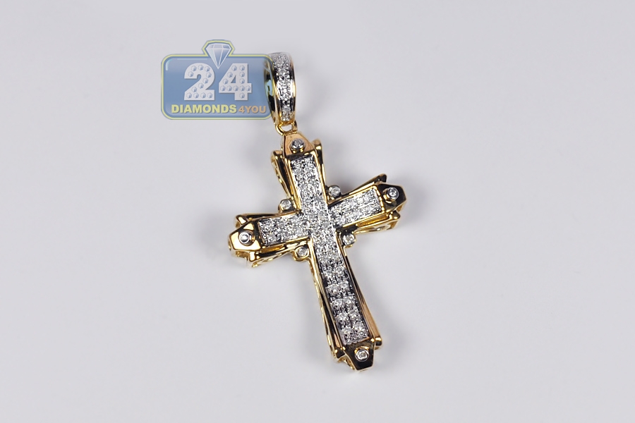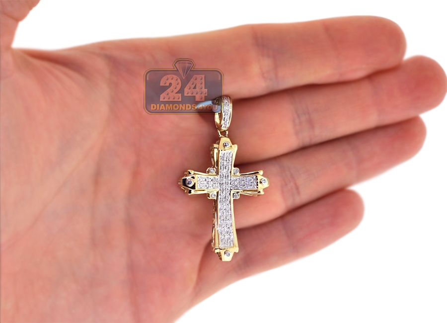 10K Yellow Gold 0.31 ct Diamond Cross Mens Pendant